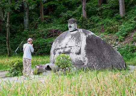 ![]() 万冶の石仏:万次3年(1660年) 石仏は大きな自然石の上に不自然な仏頭を乗せたユニークな石仏 |