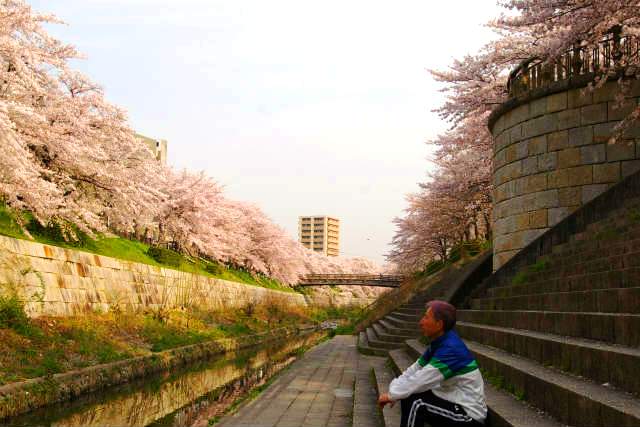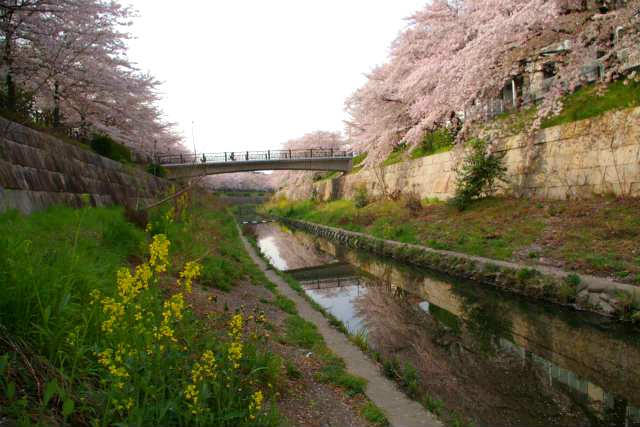 ![]() 鼎小橋を見る(萩山橋との中間) * 『一片の桜川面で重なりし』 半歩 |
