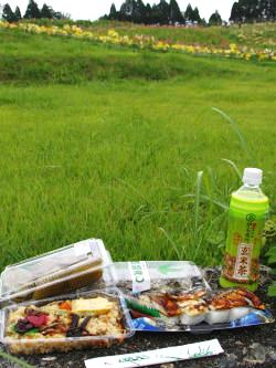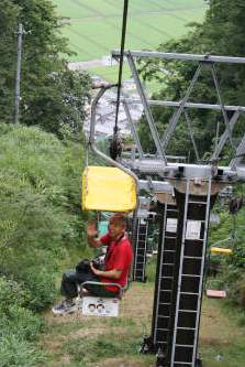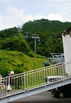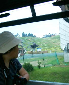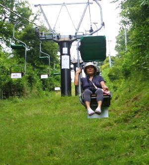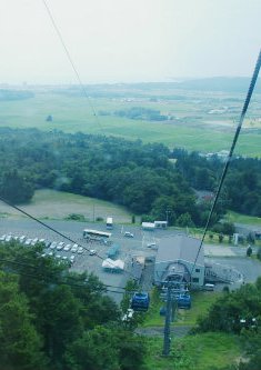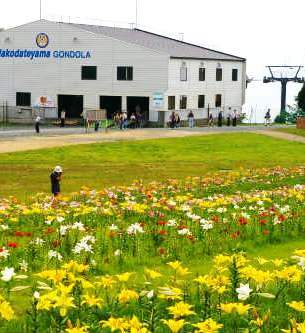 ![]() 箱館山ゆり園へ弁当を下げゴンドラ(往復\1800が\1000)に乗り込む |