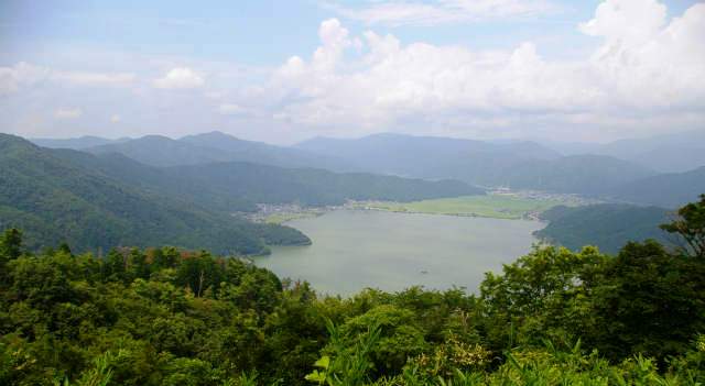 ![]() 羽衣伝説(各地に同じような伝説がある)の余呉湖が一望 |