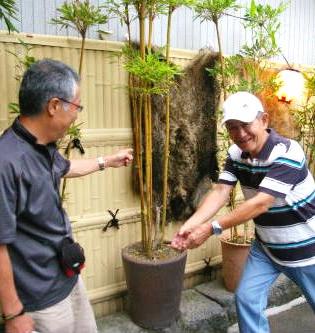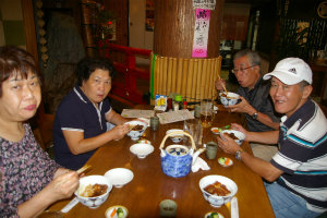 ![]() Oosimaさんは、まづイメージトレーニングする慎重派!そこで私が意表をついてスイッチオンで、大慌て! 温泉卓球をやりだしたら、ひと汗かいてしまい再度温泉で汗を流す。 |