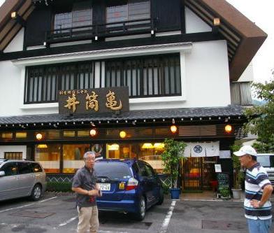 ![]() お目当てのうなぎ屋が休みであったので、中に入ってきた。 猪の毛皮の前でおどける二人。 |