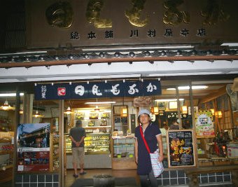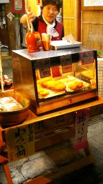 ![]() 井筒亀の隣(ここも井筒亀)で「ししコロッケ」を買い、食べながら「たんころりん」を眺めるOosima氏 |