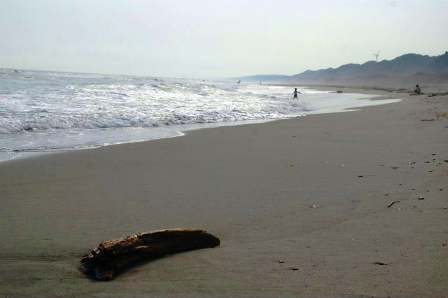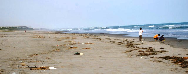 ![]() 左後方に浜名バイパス*海岸は漂流物で汚れている |