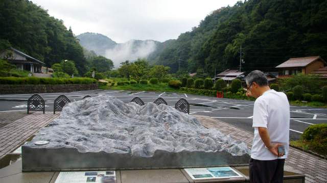銀山を取り巻く模型を見て、あの山頂が要害山(山吹城址)だな?