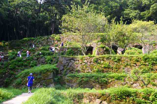 女性陣は電動自転車で・・ラクラク! 町並み地区へも二人で外れまで散策。↑下川原吹屋跡(精錬所)