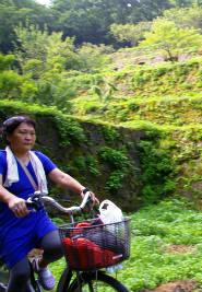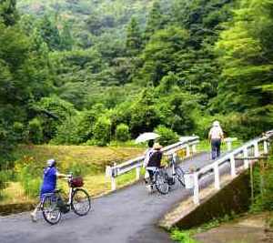 電動自転車\700を女性2人が借り、男二人は片道40分の健脚を披露する。