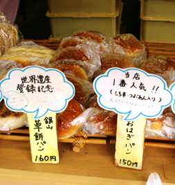 名物のパン屋さんでおはぎパンと草餅パンを買いました・・パンの中にそれぞれの餅が入る!
