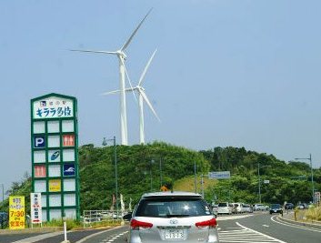 風力発電が多くみられる出雲に近い「道駅キララ多岐」を通過するOosima氏