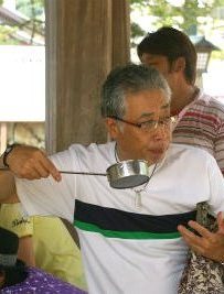 『手水』は左手に水を受け、口を清めます。柄杓に直接、口をつけるのは間違いです。ブー!↑御仮殿