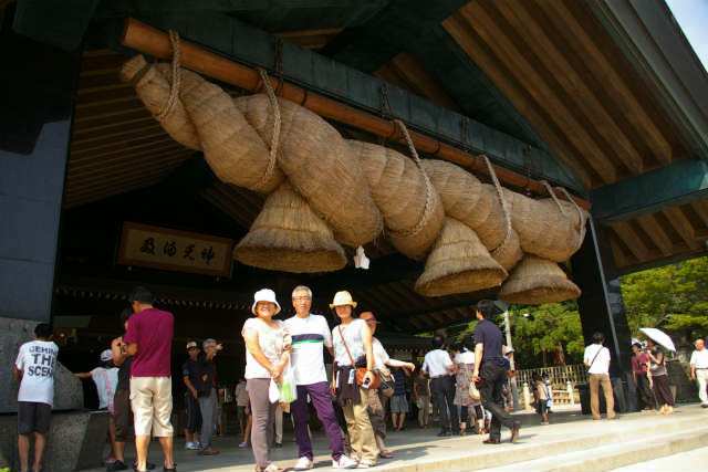 巨大なしめ縄に驚く(仮殿のしめ縄と間違え小さいのでおかしいと思ったら)