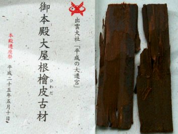 参拝後前回葺いた60年前の桧皮を頂きました。