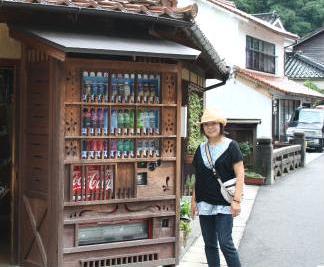 通りをのんびり散策すると、木製の自動販売機を見つけた。