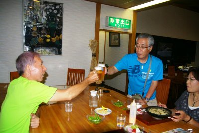 ![]() ホテルの食堂で定食と単品を二人で食べるが、これでも量が多すぎる。 今日の楽しかった話でワイワイ盛り上がる。もう明日は帰るだけです。 |