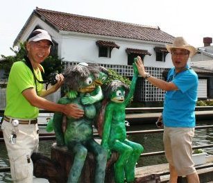 ![]() 疲れも回復しホテルを出る。 旧加茂川べりの河童にハイタッチ? 鬼瓦のポスト? |