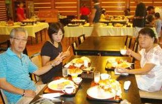 ![]() ![]() ![]() 部屋は木の茂った山側、5Fだが建物は4階建て?何と中4Fが食堂でした。 今日も2倍の朝食べるんだよ・・と2倍サインを出す。デザートのオレンジが歯ぐきにはさまったー!ウエ〜! |