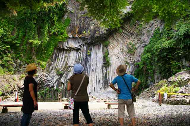 ![]() 六角形の柱を束ねたような不思議な美しさを見せ、国の天然記念物に指定されています。 誰が?誰かな? |