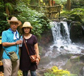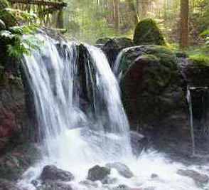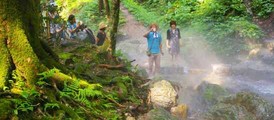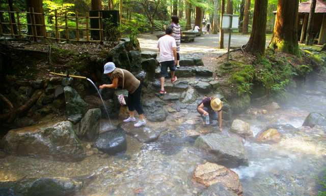 ![]() マイナスイオン満載のせせらぎで滝の水に触れる |