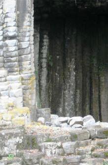![]() 『青龍洞』 玄武洞の中では最も長い節理が見られ、洞の高さ33m、 巾40mで石柱は中央に向かって傾斜しており、長い節理は1個で15mもある。 寄らないつもりが来て良かったねー! 玄さん? |