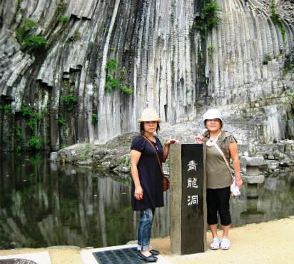 ![]() 大迫力の『玄武洞』 ボランティアのお兄さんの説明を聞きながら! 「玄さん」はOさんだわ! |