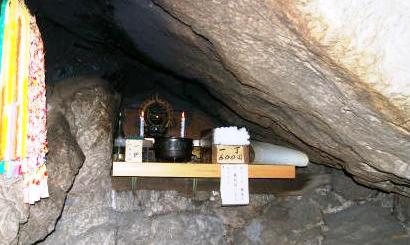![]() 本尊の虚空蔵菩薩さんは、巨大な岩の下の方にあり、役小角が彫刻したと言われています。 |