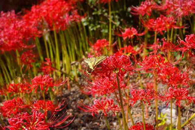 ![]() 曼珠沙華とは「天上に咲く花」だそうです。金生山明星綸寺岩巣公園の斜面に群生! |