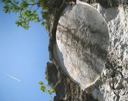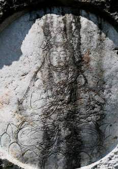 ![]() 磨崖仏を見上げると飛行機雲が一筋 |
