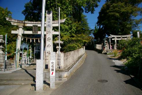 ![]() 赤坂宿から北へ右折>子安神社を左に見て、化石館の案内板方向の狭い道を進。 右は秋葉神社で、どちらも曼珠沙華が群生していたが帰りに寄ることにし先に進む! |