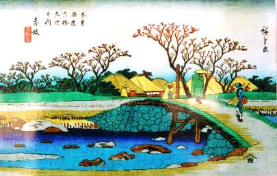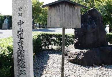 ![]() 赤坂は中仙道六十九次の五十七番目の宿場町 物資の搬入・搬出で栄えた赤坂港跡には、当時を偲ぶ常夜燈がある。 |