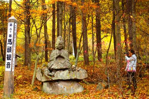 ![]() 群馬県鹿川温泉までの94号沿道に、百体の観音地蔵が安置。 50番目の馬頭観音像 |