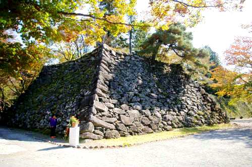 ![]() 苔むした石垣が時代を感じさせる天守台 |