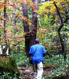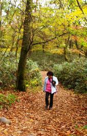 ![]() 腰を据え紅葉と滝の優雅さに見とれる |