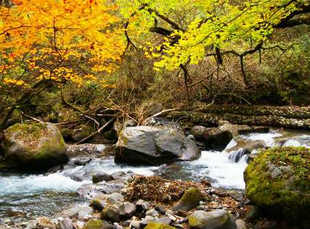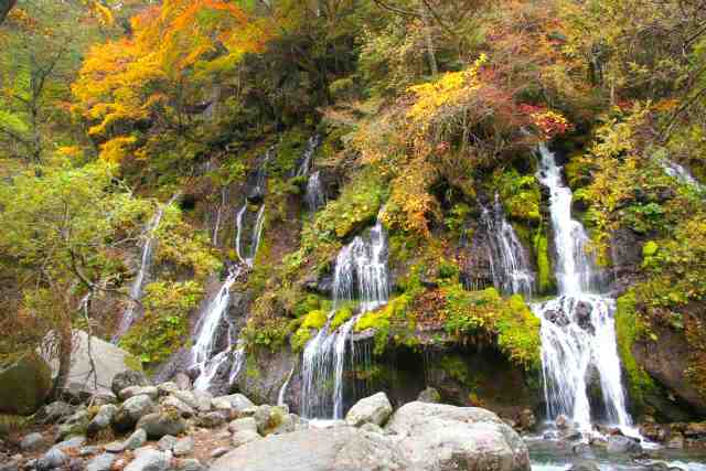 ![]() 川俣川渓谷にある美しい優雅な滝。 落差10m・幅15m |