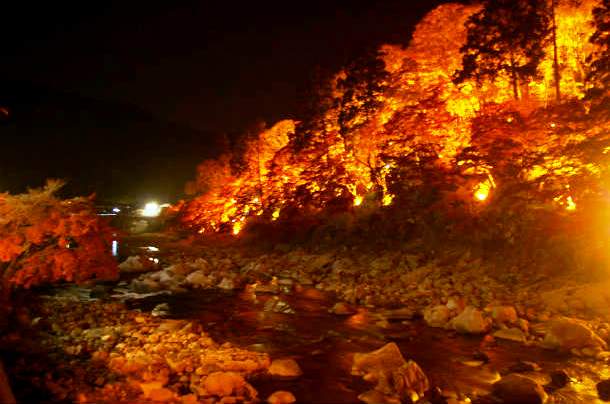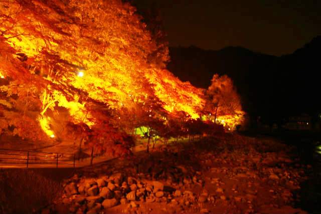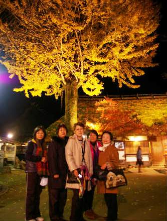 ![]() 闇夜にライトアップされた銀杏にカエデ! 9時きっかりに暗くなるから足元に注意。 |