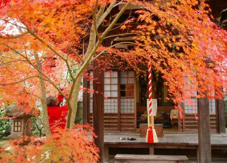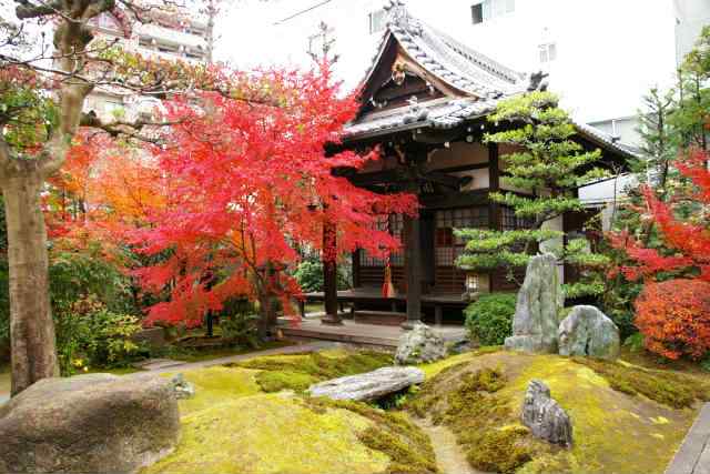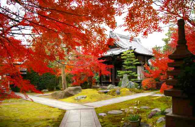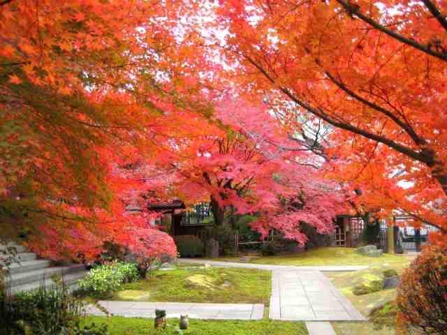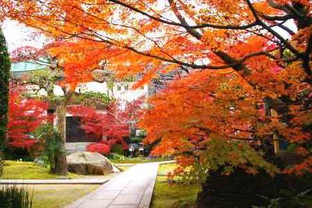 ![]() 門をくぐると目に付く大きなモミジを透かし建つ本堂 臨済宗・妙心寺派 |