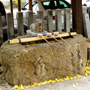 ![]() 手水場には羊の口からお水が出ていた 拝殿の奥に本殿 |