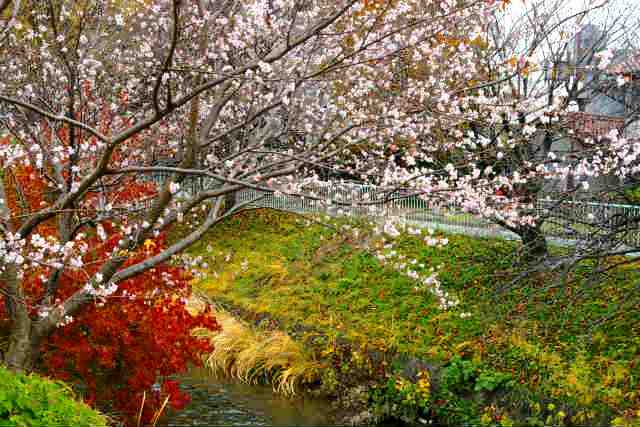 ![]() 黒川を見下ろすように冬桜が咲き誇っていた |