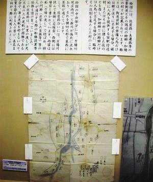 万場の渡し(万場川) 現庄内川の古地図大塚家は14代尾張藩主、徳川慶恕(よしくみ)の重臣 尾張藩の重臣、大塚篤輝「田宮如雲(たみやじょうん)」の生家、大塚家の文書を中心に紹介。 史料の時代は、主に江戸時代後期から明治時代初期に当たり、家の由緒書や 絵地図、熱田の町に関する文書等その種類は多彩。 |