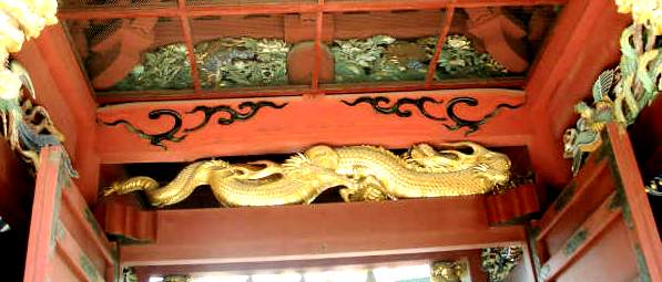 ![]() 楼門の左甚五郎作「水飲み龍」 安永の火災の時、池に下りて水を吐いて御殿にかけたと・・ |