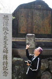 舎利殿と電力王といわれた福沢桃介(川上貞奴の夫)の碑