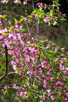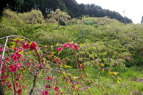 ![]() ![]() 4月上旬〜中旬にかけて、山間一帯を約2500本のしだれ桃が、深紅・白・桃色など色鮮やかに埋め尽くす。 約1qの遊歩道は甘い香りに包まれて「桃源郷」さながらの風景が楽しめる。はずだったが! |