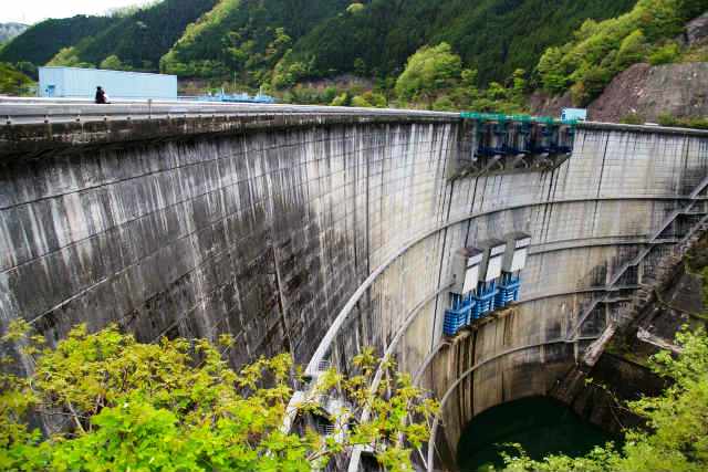 ![]() 奥矢作湖を貯水池とし、S41〜46年145億円を要して完成。 アーチ式コンクリートダムで、多目的ダム。 |