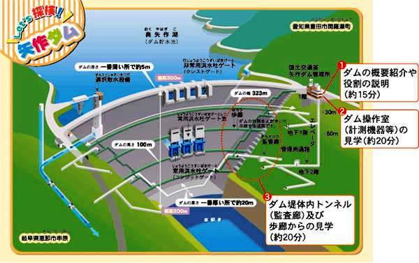 ![]() 最初は休みが火曜と見間違え、毎火曜に見学OKとは驚いた。 2000年の東海豪雨でダム貯水池に溜まった砂(ナゴヤドーム12杯分)を捨てに行く作業が大変だ〜! |