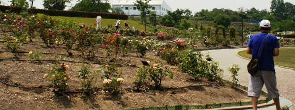 ![]() バラの苗木がまだ若いのか迫力に欠ける。 直ぐ脇を中央道が走る |
