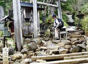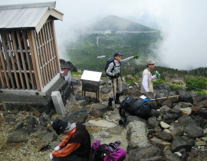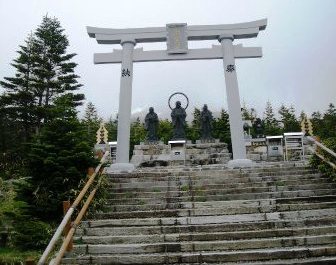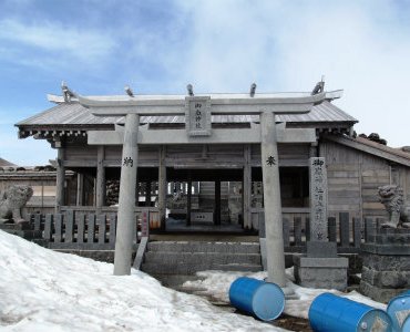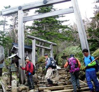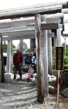 ![]() 山頂の御嶽神社に登頂のお礼と下山の安全を願う |