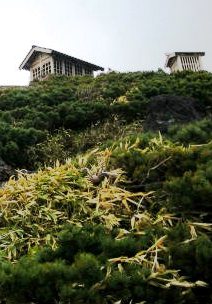![]() 1:55 九合目 1:21 御嶽神社頂上奥社本宮 ヘリコプターで荷揚げされたドラム缶がいくつも転がっていた |