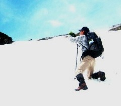 ![]() 『大江大権現』の鐘を鳴らして登山開始です 10::00 荷揚げの人に登山道の状態を聞く 足を雪に取られて転んだOsima氏を心配そうに覗き込む・・・ストックにストッパーが無く不便 |