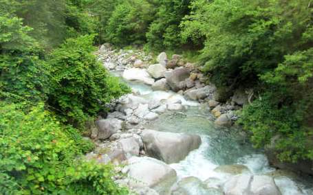 ![]() バスから清らかな川を眺めて心が躍る |