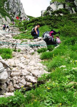 ![]() 八丁坂の急斜面を登るも、先週の富士登山を思えば楽々であった。 |
