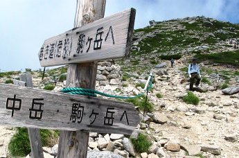 ![]() 駒ヶ岳から中岳と雲に見え隠れの宝剣岳 |